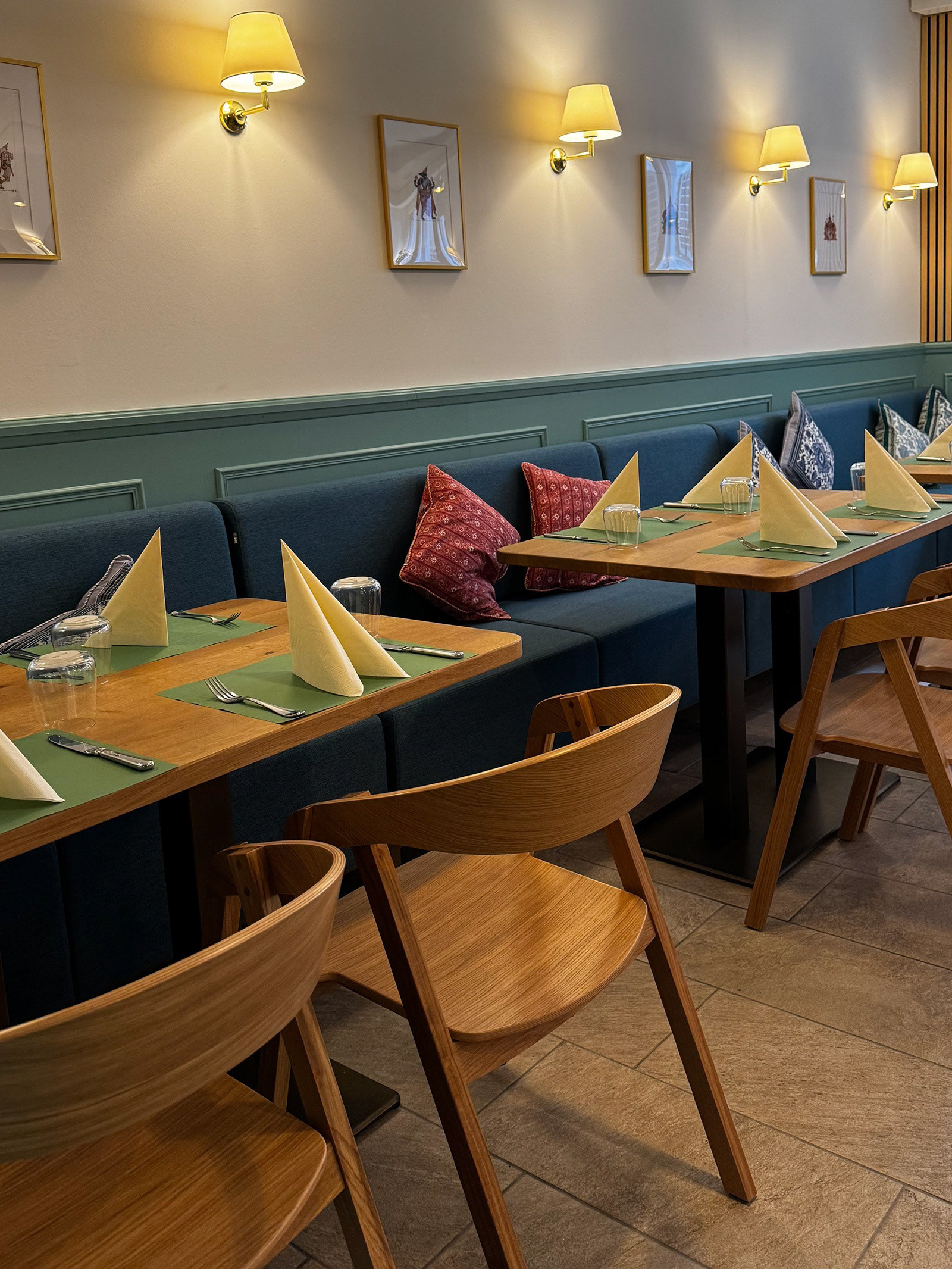 inspired the dramatic mirror murals around the dining space.
